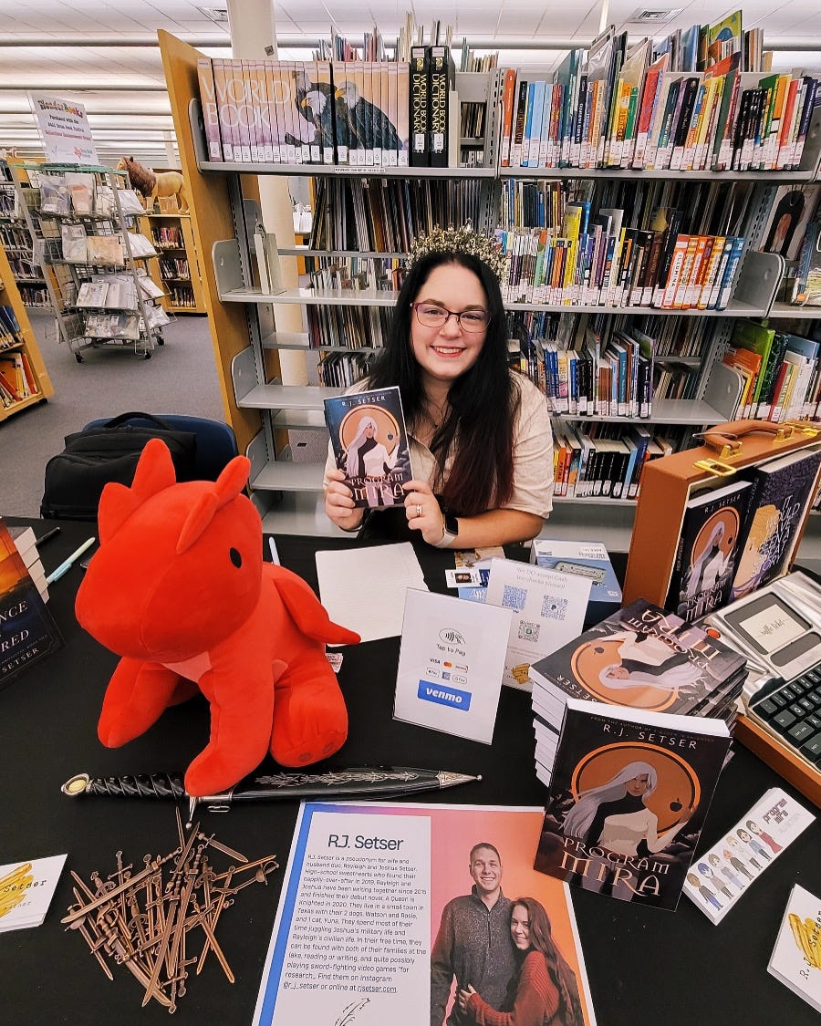I got off the plane from Vegas and immediately began packing for another book signing with Emma Hill. Returning to the W. Walworth Harrison Library in Greenville, TX was nostalgic and full of surprises! We ran into many of our author friends and saw so many returning faces who had already read our books from last year! In a moment of bravery, I even checked the library history for A Queen is Knighted and discovered that it had been checked out from that library 9 TIMES!